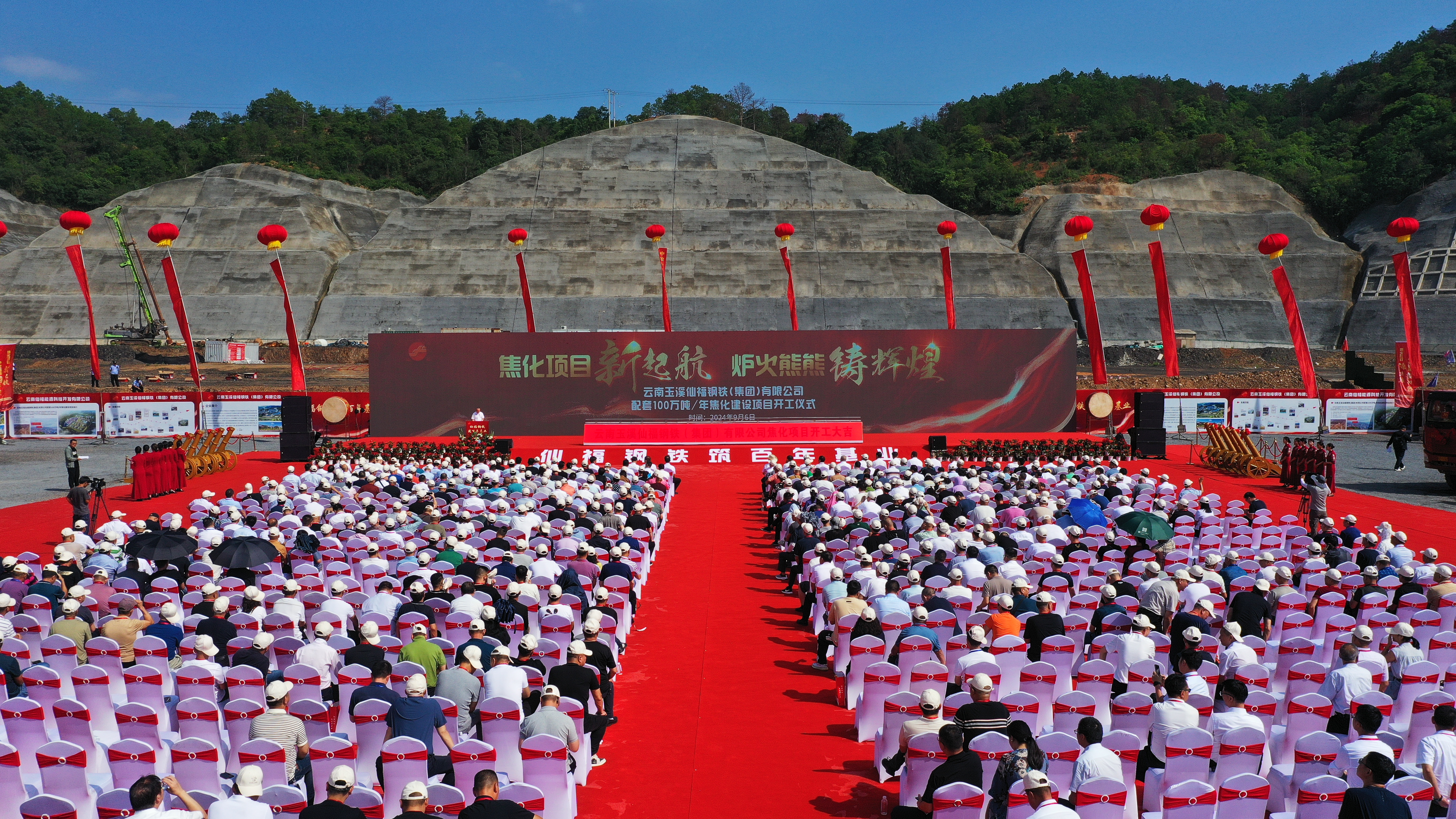 9月6日,云南玉溪仙福鋼鐵(集團)有限公司舉行配套100萬噸/年焦化建設項目開工儀式,標志著仙福鋼鐵集團在全力打通鋼鐵全產業鏈的道路上,邁出了關鍵的一步。儀式現場來自玉溪市委、市政府,新平縣委、縣政府,福建長樂區委、區政府以及各相關協會和合作企業、各界朋友近1000人共同見證了仙福鋼鐵集團發展的又一個里程碑。