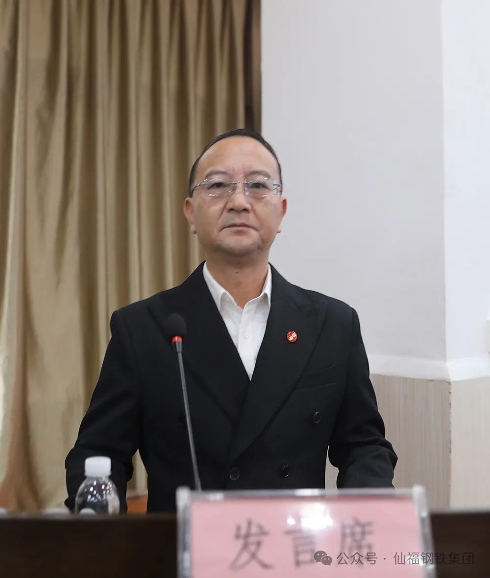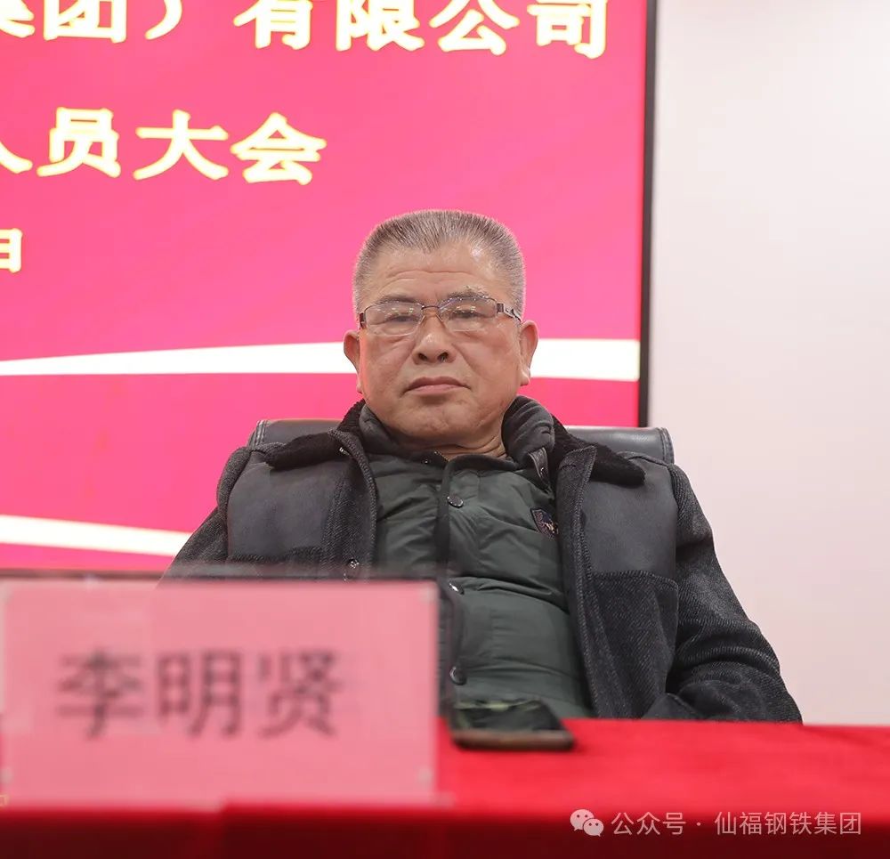 仙福鋼鐵集團董事長李明炮、副董事長李明賢、總經理李枝官、副總經理李發生,董事王傳泰,名譽董事長林德官及各分廠、各部門管理人員共300余人參會。會議由辦公室主任楊智昆主持。